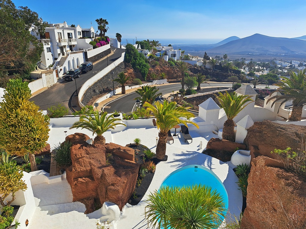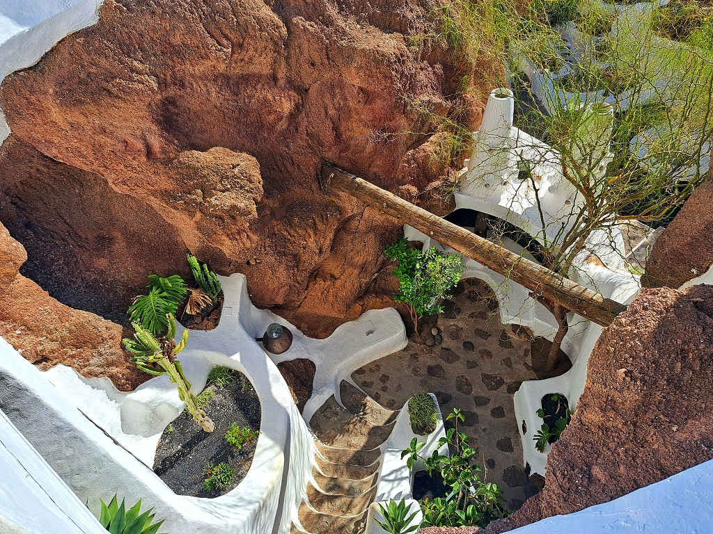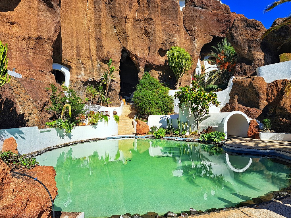 Not far away from the cactus garden, we find another one of the hidden treasures of the island: an incredible villa built within the mounds of volcanic lava.